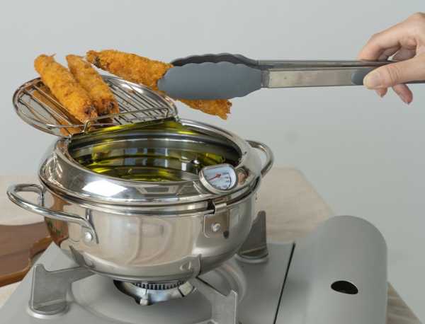 미니 캠핑용 가정용 감성캠핑 스텐 튀김냄비 튀김기 여바라 온도계