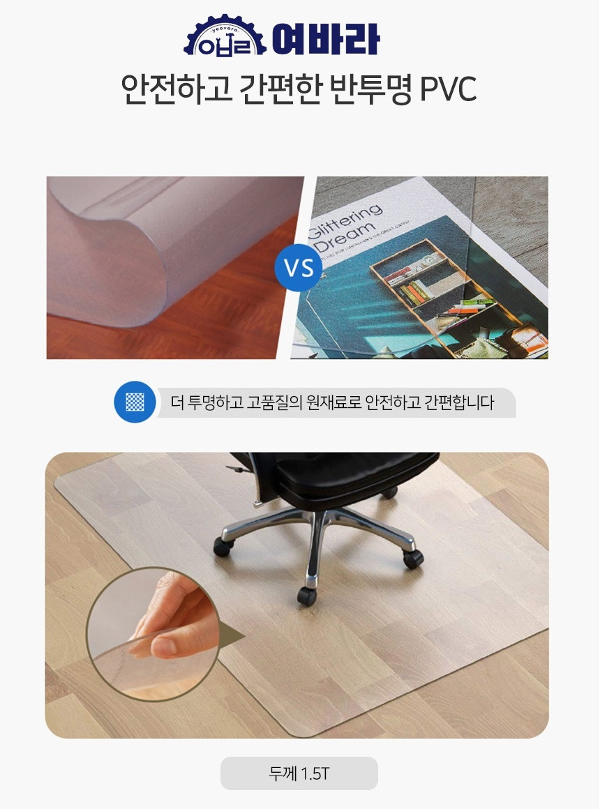 90X140cm 장판보호패드 여바라 컴퓨터 의자바닥보호매트 반투명